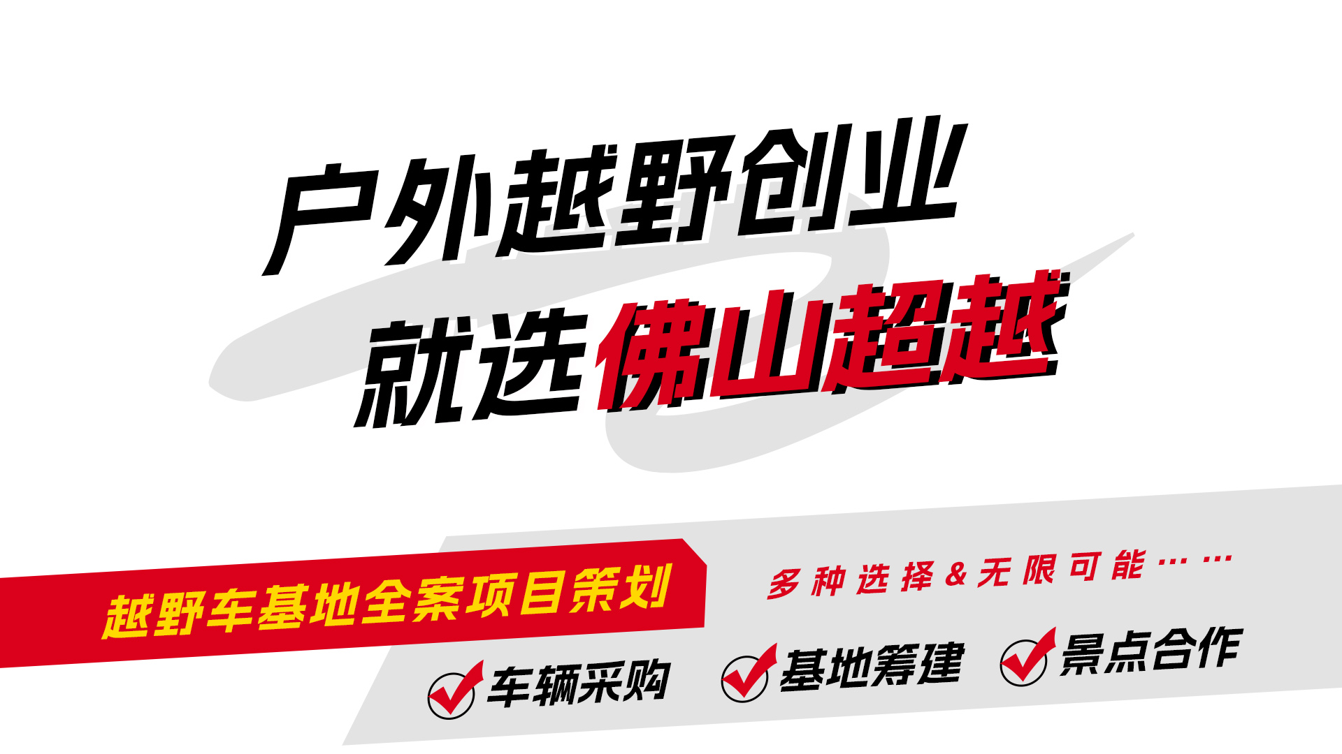 是一家專注于戶外越野車基地整體解決方案的專業機構,不僅提供豐富多樣的全類型越野車型資源,更涵蓋項目策劃、場地設計及運營指導等一體化服務。我們憑借精準的市場定位與獨到的策劃能力,為客戶量身定制高效可行的越野車基地項目方案,同時,利用專業團隊進行場地創意設計,確保基地設施布局合理且富有吸引力。此外,我們還提供全程運營指導服務,從開業籌備到日常管理,助力合作伙伴優化運營流程、提升服務質量,共同構建卓越的戶外越野體驗平臺,著力推動行業發展。
